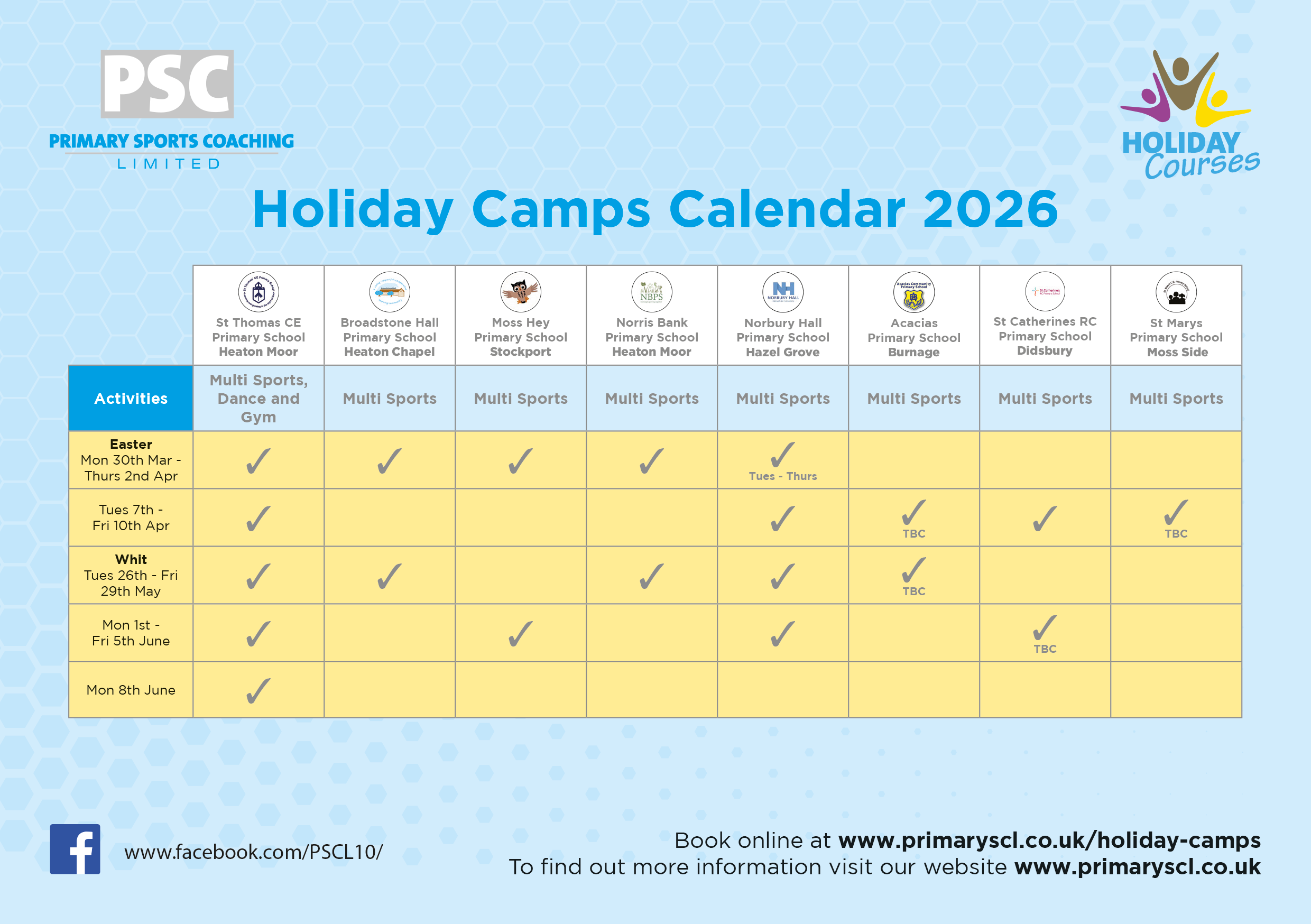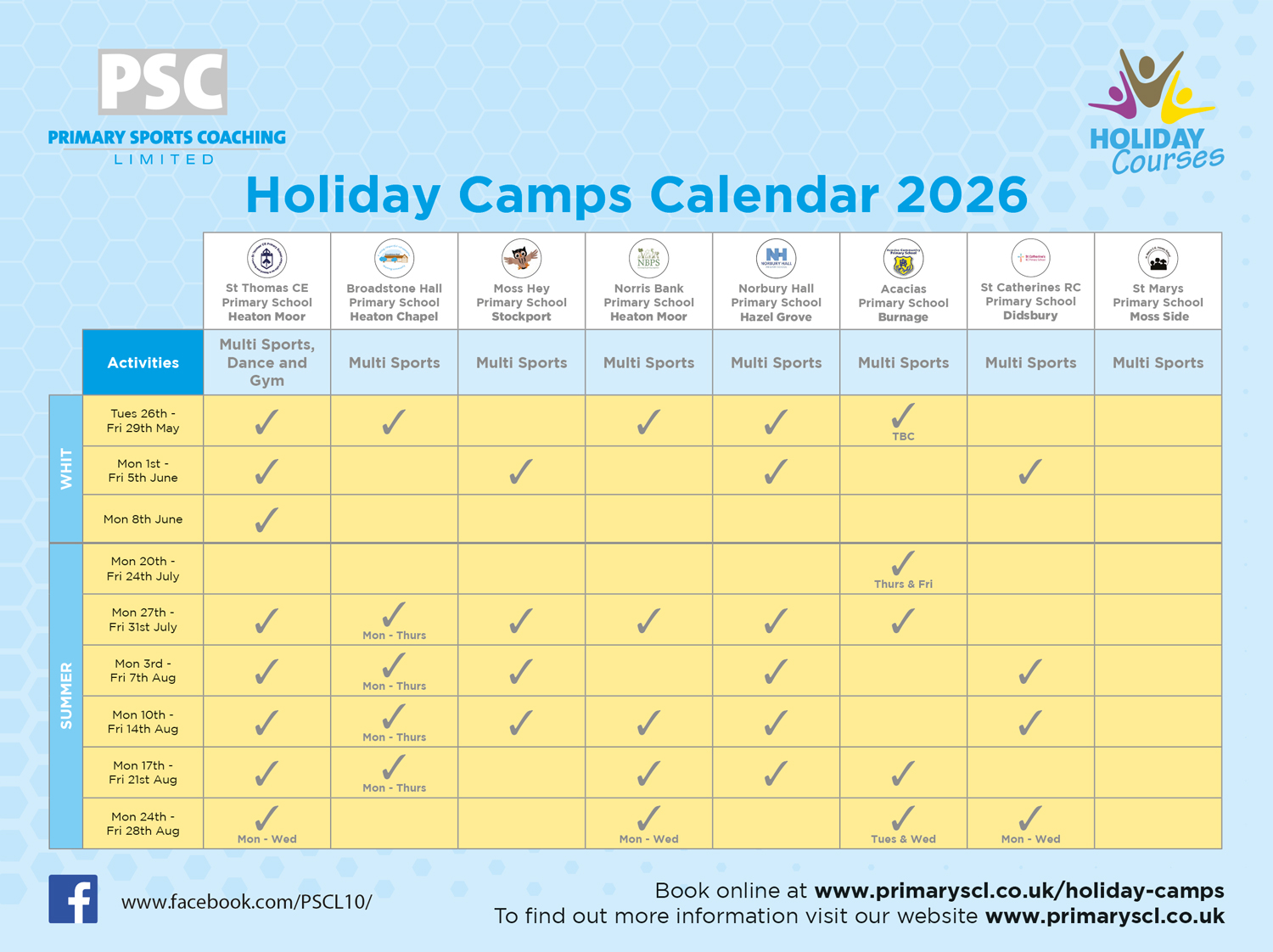 We are delighted to announce that we will be running holiday camps at 8 fantastic venues during the 2025/26 school year.