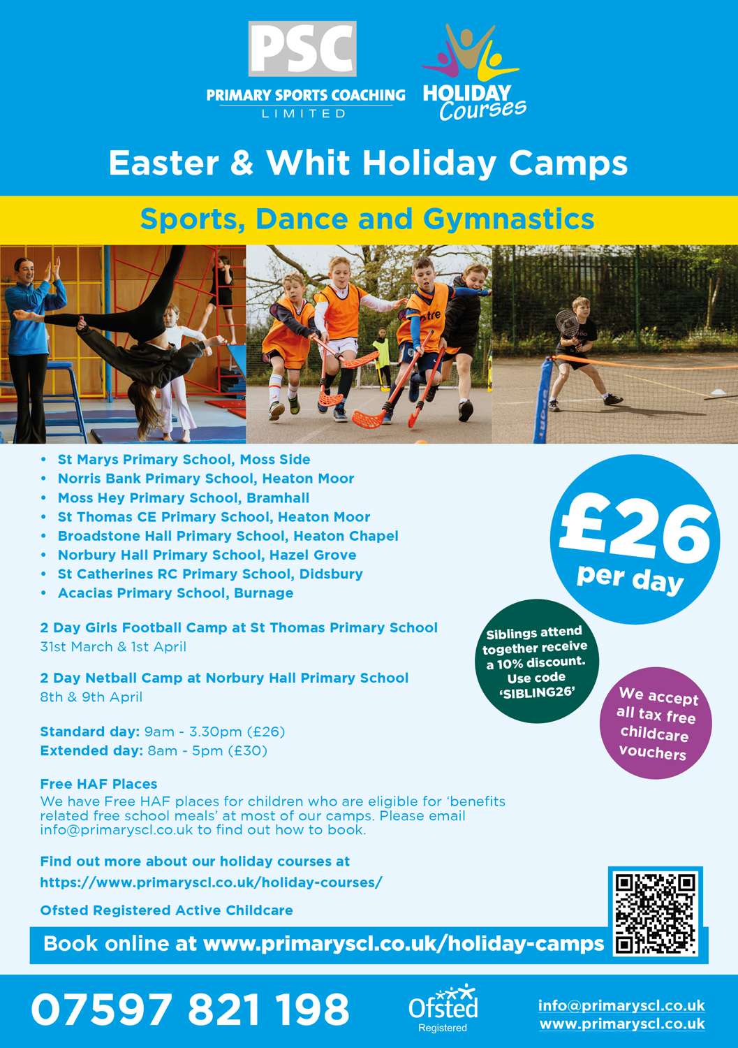 A 10% discount is available for siblings attending together. Please use discount code ‘SIBLING26‘ at the checkout.