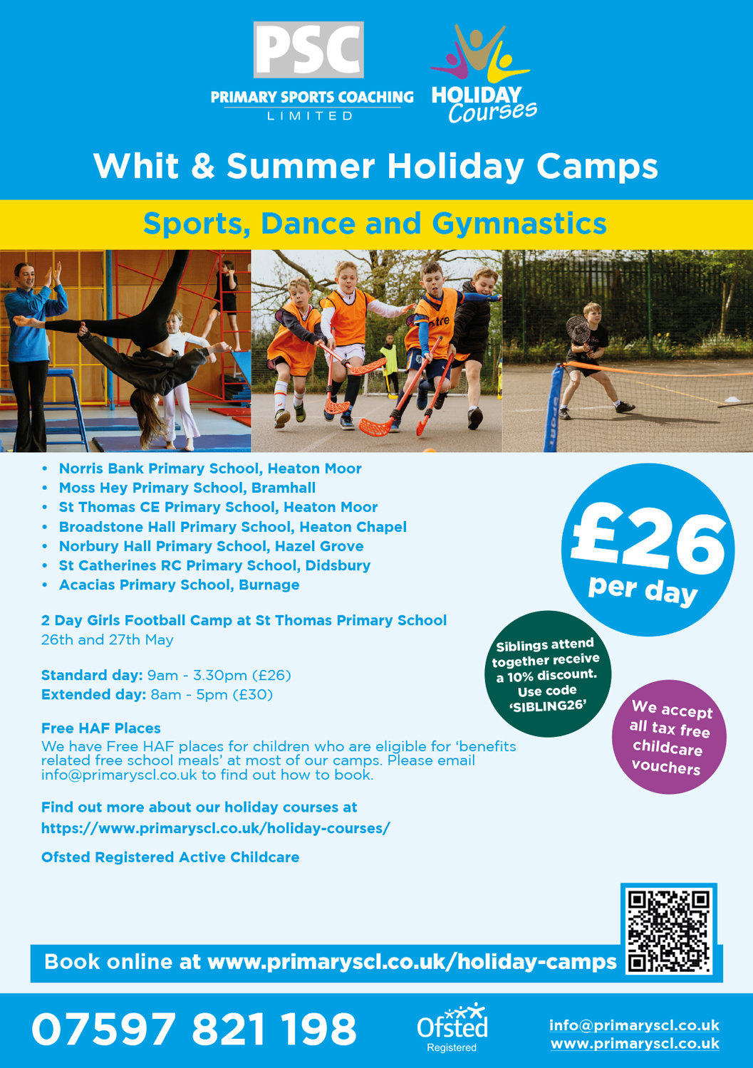 PSCL Holiday Camps are a registered Ofsted provider, all of our settings are on the Voluntary part of the childcare register.